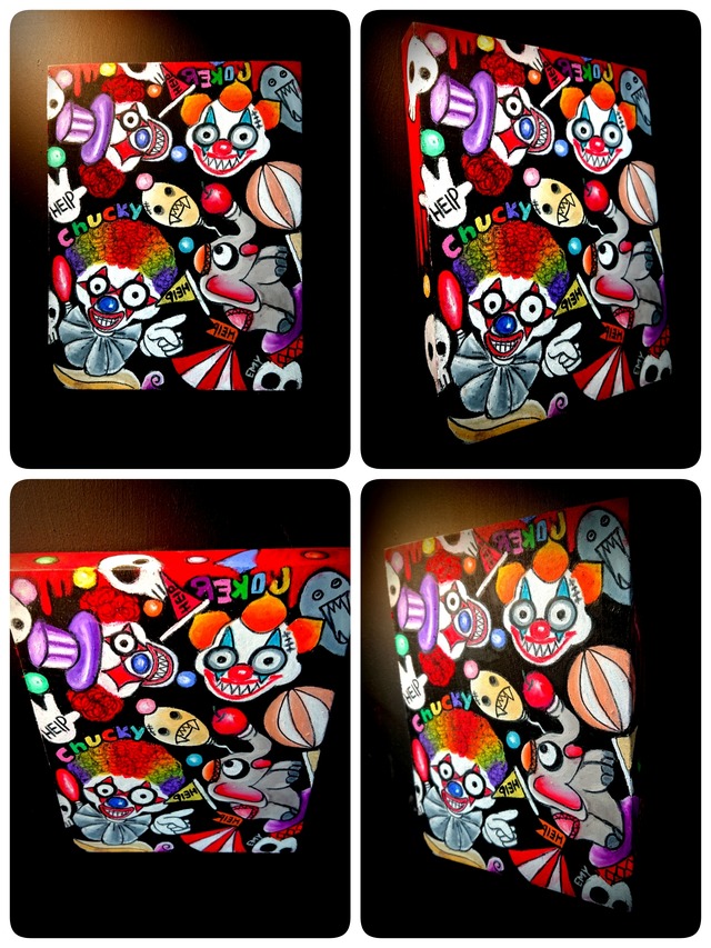 artist:Emy title:【P/ CHALK CLOWN 】vol 27 ・木製パネル ・Size: B5 (257×182mm) 厚み19.5mm ・drawing materials Chalk_art ・側面にも絵入れしています。 ・インテリアや ガレージのワンポイントに。 ・写真4,5枚目はvol 25,26と一緒に並べたイメージです。25,26は別途販売しております。 ・世界に1点の ハンドメイドを楽しんで頂けたら幸いです。 ・ペイントとはまた違った風合いを楽しんで頂けたらと思います。是非、ご検討くださいませ ・印刷物とは異なり多少の凸凹ご了承ください ・神経質な方はご遠慮下さい ・パソコンの環境によっては写真の色味が実際の商品と少し異なる場合があります。 ご了承下さい。 ・ハンドメイド1点物の為交換ができません、、 ・ご不明な点などありましたら 購入前にたっぷりご質問くださいませ ※離島の場合は送料別途お見積となります。