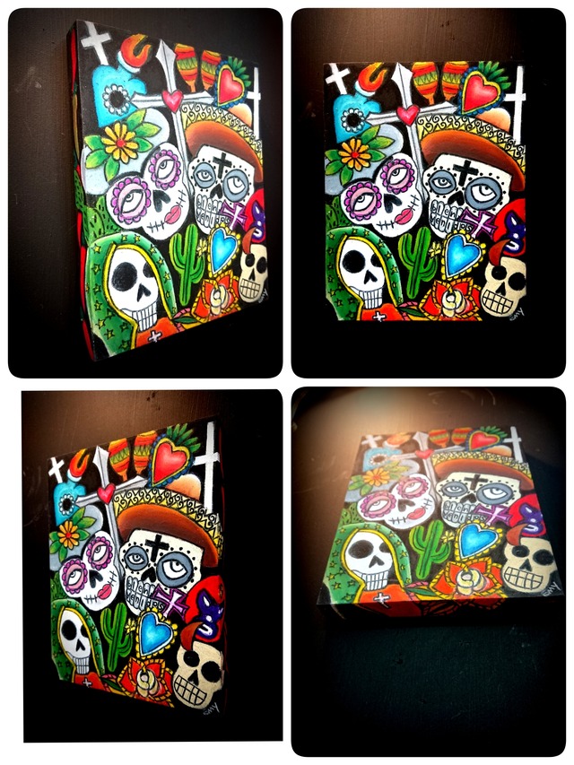 artist:Emy title:【P/ CHALK MEXCO 】vol 26 ・木製パネル ・Size: B5 (257×182mm) 厚み19.5mm ・drawing materials Chalk_art ・側面にも絵入れしています。 ・インテリアや ガレージのワンポイントに。 ・写真7,8枚目はvol 25,27と一緒に並べたイメージです。25,27は別途販売しております。 ・世界に1点の ハンドメイドを楽しんで頂けたら幸いです。 ・ペイントとはまた違った風合いを楽しんで頂けたらと思います。是非、ご検討くださいませ ・印刷物とは異なり多少の凸凹ご了承ください ・神経質な方はご遠慮下さい ・パソコンの環境によっては写真の色味が実際の商品と少し異なる場合があります。 ご了承下さい。 ・ハンドメイド1点物の為交換ができません、、 ・ご不明な点などありましたら 購入前にたっぷりご質問くださいませ ※離島の場合は送料別途お見積となります。