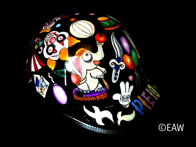 artist:Emy title:【 crown World 】ヘルメット ・Size: Free(57~60) ・drawing materials Chalk_art ・Circusのピエロをメインに描きました。 ・被る勇気のある方または インテリアやガレージのワンポイントに。 ・世界に1点の ハンドメイドを楽しんで頂けたら幸いです。 ・ペイントとはまた違った風合いを楽しんで頂けたらと思います。是非、ご検討くださいませ ・125cc以下用ヘルメット ・印刷物とは異なり多少の凸凹ご了承ください ・パソコンの環境によっては写真の色味が実際の商品と少し異なる場合があります。 ご了承下さい。 ・ハンドメイド1点物の為交換ができません、、 ・ご不明な点などありましたら 購入前にたっぷりご質問くださいませ ※離島の場合は送料別途お見積となります。